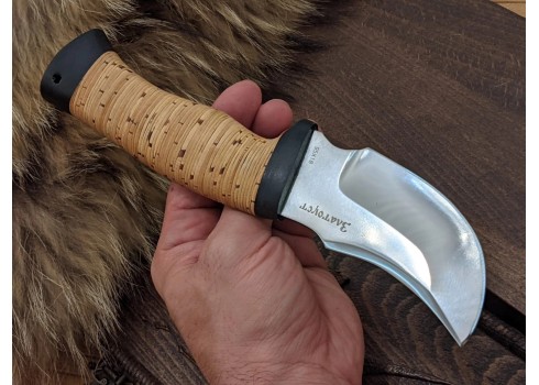 Небольшой шкуросъемный, очень легкий и прочный нож с широким клинком. Его особенность заключается в круто загнутом к острию клинка лезвии, именно это обеспечивает ему хорошие режущие качества, позволяет снимать шкуру животного, не повреждая при этом брюшину.